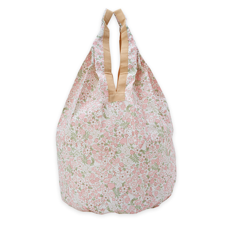 リバティ柄の「ハローキティ」のフェミニンなエコバッグは、いつものお買い物も楽しく演出してくれます。