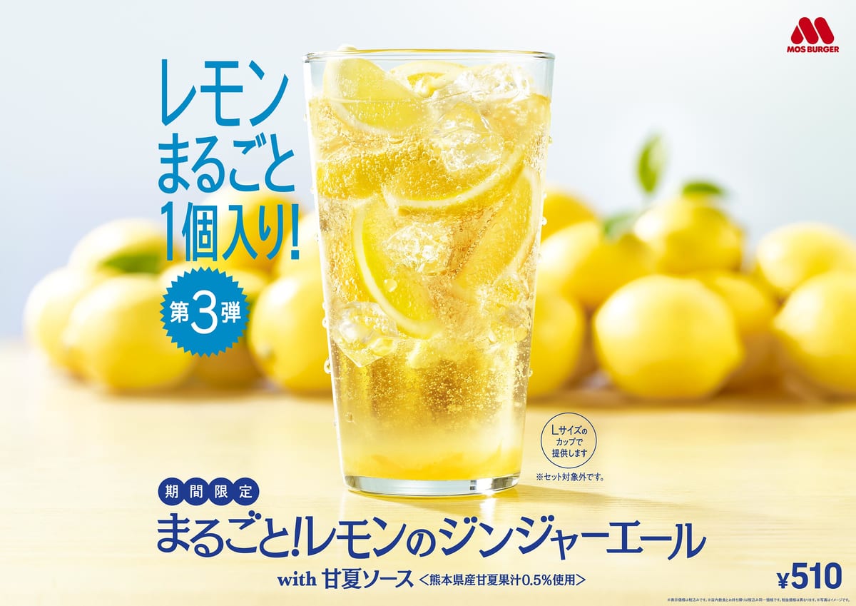 モスバーガーから、「まるごと!レモンのジンジャーエールwith甘夏ソース」と「甘夏 ジンジャーエール」が期間限定で登場。