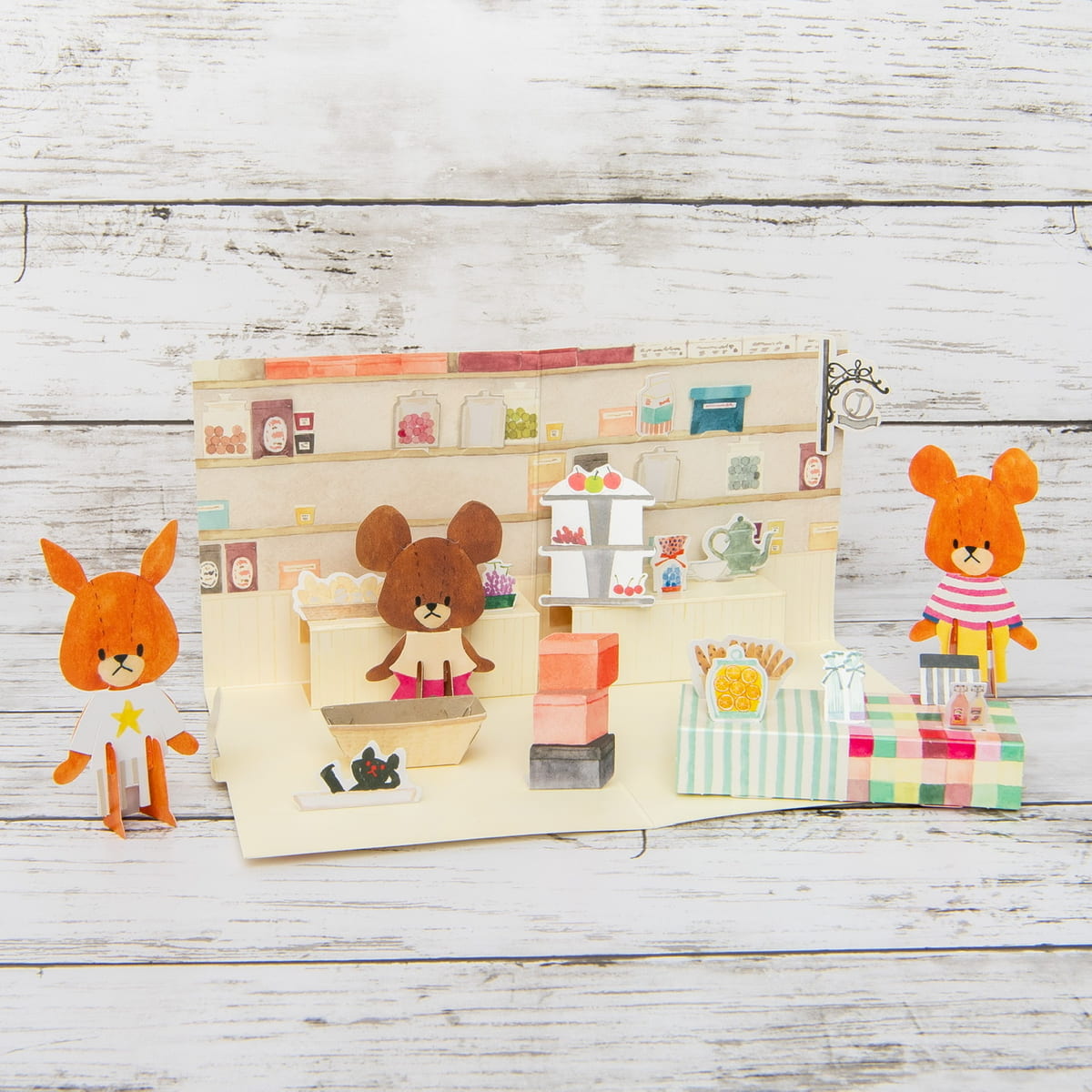 雑貨やお菓子が売っているかわいいお店で、ジャッキーと一緒に店員さんやお客さんになりきってお店屋さんごっこをすることができます。