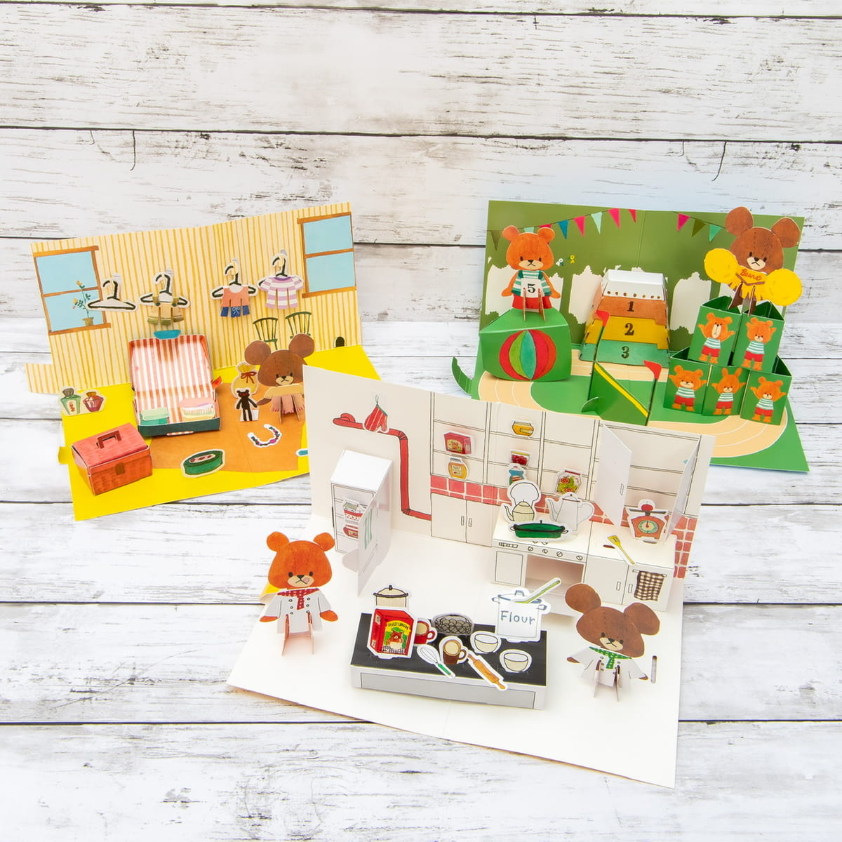自分で組み立てたペーパークラフトで、ごっこ遊びが楽しめる『くまのがっこう』のかわいいおもちゃ!