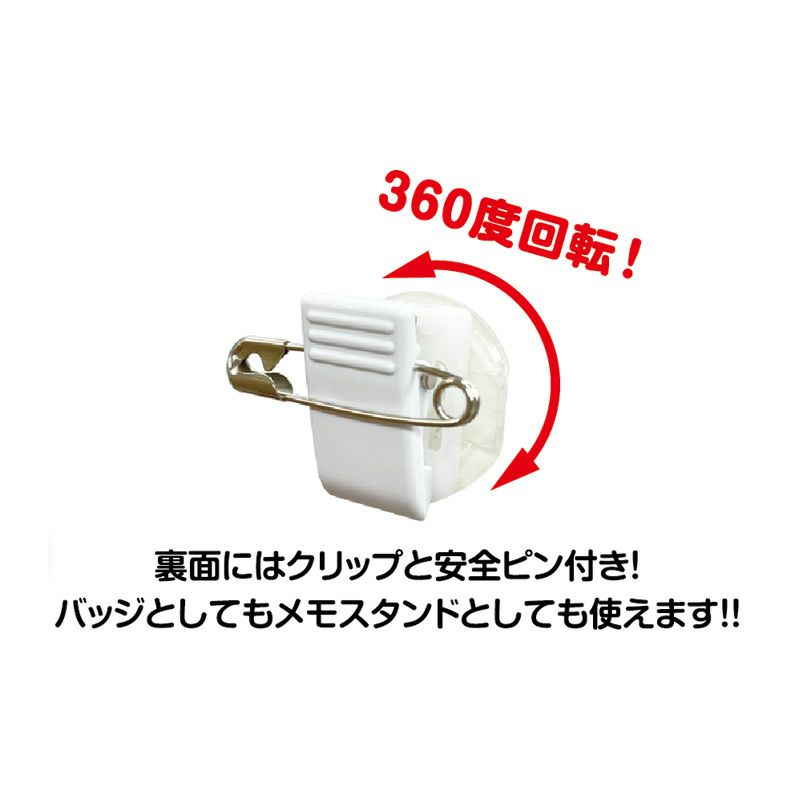 バッジとしてはもちろん、メモスタンドとしても使える多機能タイプのグッズです。