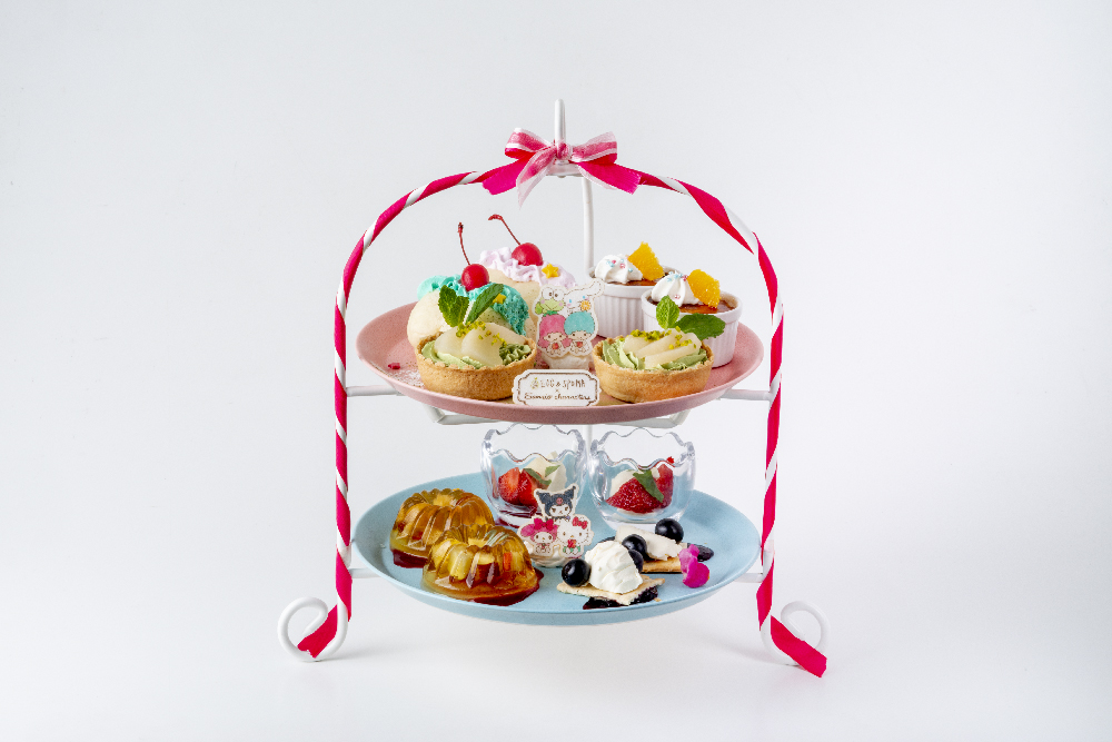 5・6月は「マイメロディ」、7月は「ハローキティ」と「けろけろけろっぴ」、8月は「リトルツインスターズ」のフルーツたっぷりのデザートがラインナップ。