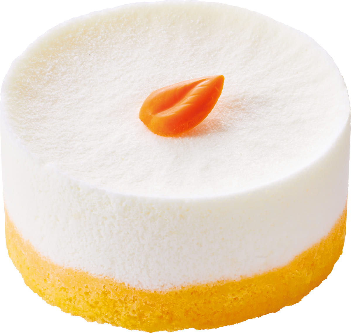 オレンジを練り込んだスポンジの上に、メレンゲを混ぜた軽い食感のクリームチーズがのせられ、中にはごろっとオレンジが隠れています。