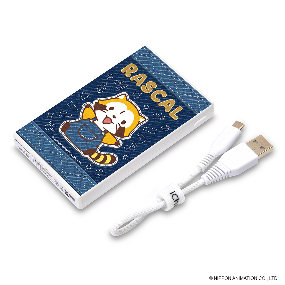 「ラスカル」のほっこりかわいいデザインに癒される、スマホやタブレットの充電に便利なリチウムバッテリーです☆