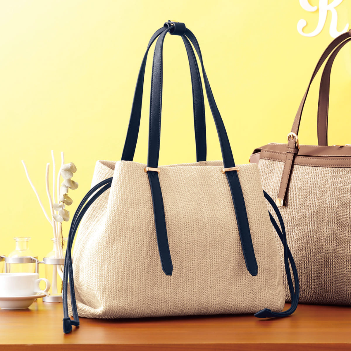 巾着を絞れば三角フォルムに、開くとスマートなトートバッグとして使えます!