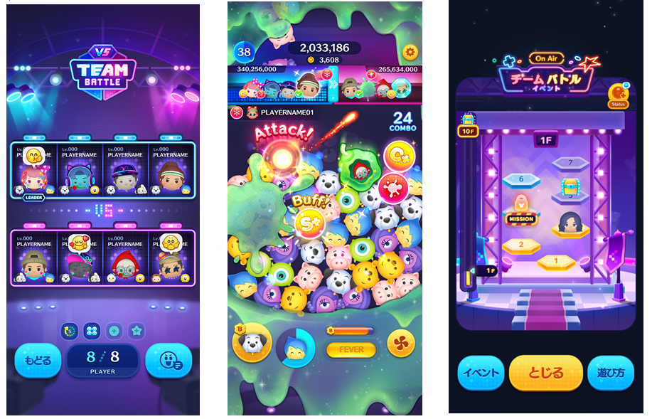 LINEが展開するサバイバルパズルゲーム『ツムツムスタジアム』に4対4で戦う「チームバトル」が登場です。
