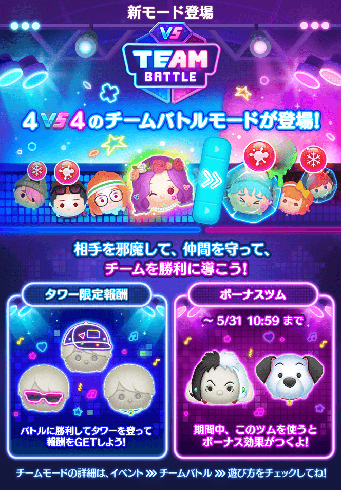 『ツムツムスタジアム』の新モード4vs4「チームバトル」は、2021年5月17日より登場です。