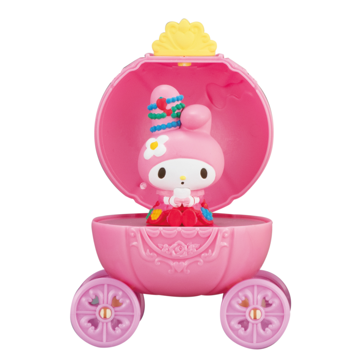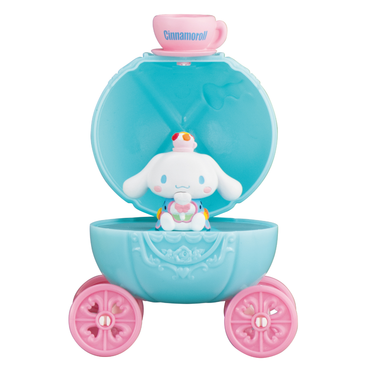 サンリオピューロランドのパレード「Miracle Gift Parade」のコスチュームを着たサンリオキャラクターたちのフィギュア付きで、馬車に乗っている姿が楽しめます☆