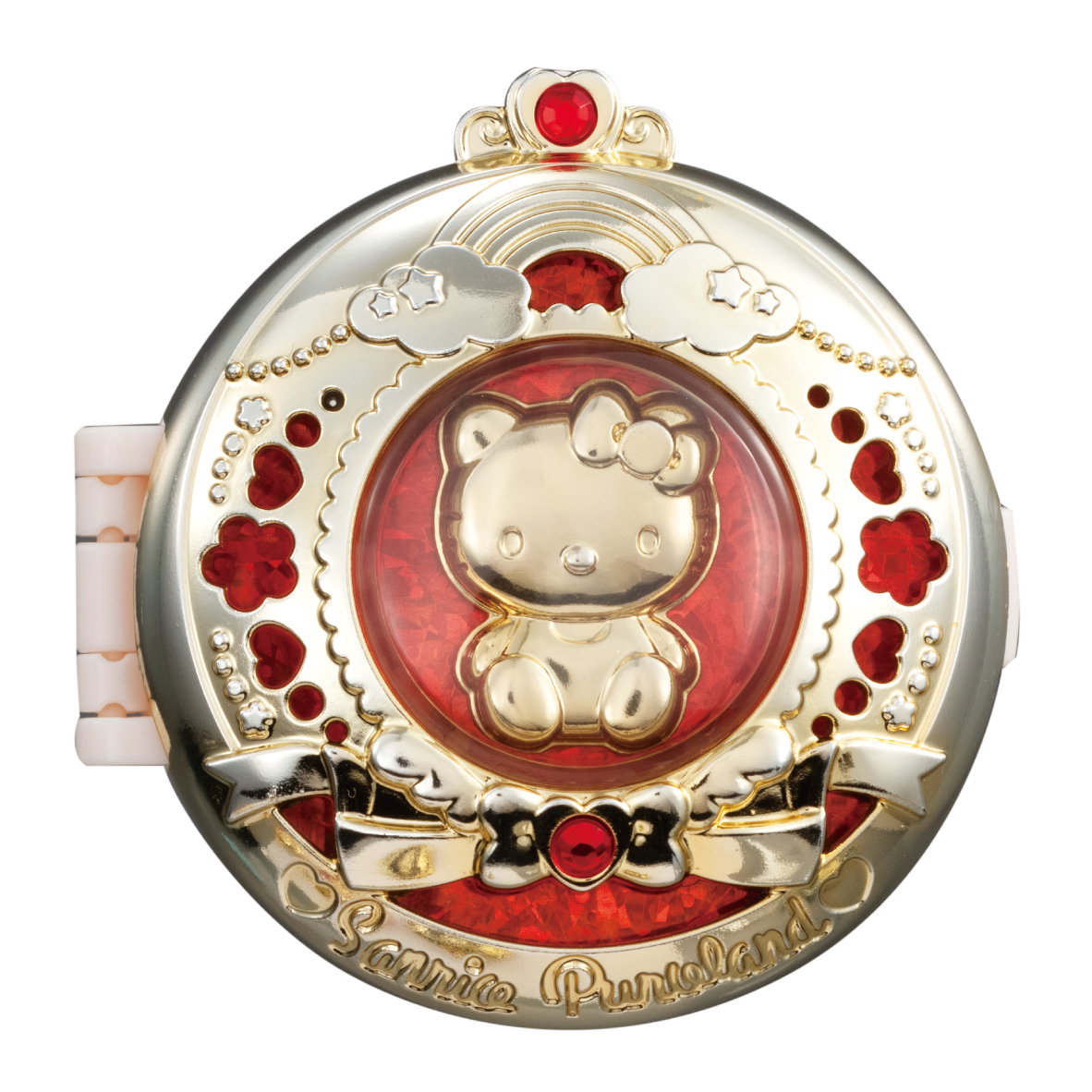 中央にキャラクターのレリーフが施さた「サンリオピューロランド限定 サンリオキャラクターズ ロマンティックカプセルコンパクト」