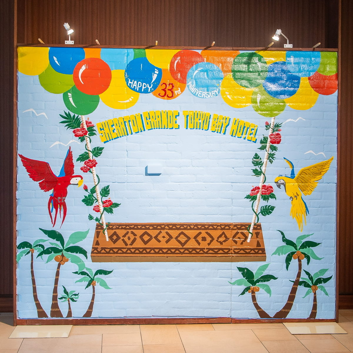 季節ごとにデザインが変わるウォールアートのハワイバージョンがロビーに登場。