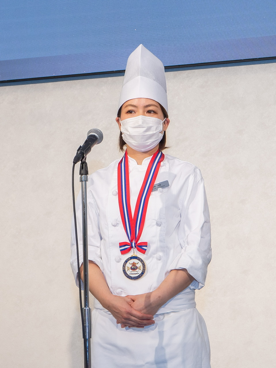 パティシエールの男澤佳菜さんは、「最下部に置いたキューブ上のレモンバーベナのソルベはすぐに溶けてしまうので、お客様に一番よい状態で提供できるよう盛り付けの順にもこだわりました」と「第14回グラス(氷菓)を使ったアシエットデセール・コンテスト」の優勝に関する思いをお話してくださいました。