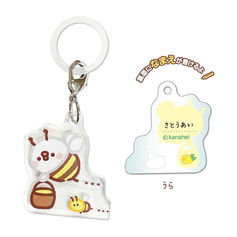 ミツバチに扮した「うさぎ」と「ピスケ」が可愛らしく、裏面に名前も書ける便利グッズです。
