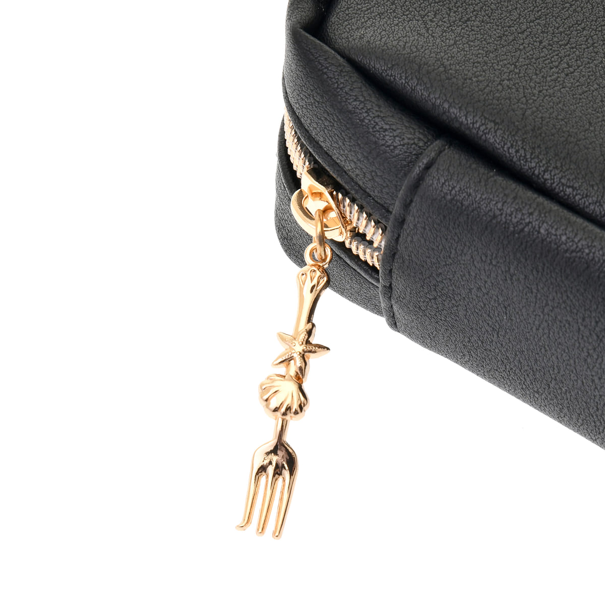 正面に飾ったフォーク型メタルパーツがアクセントになった「アリエル」をイメージしたバニティポーチ。