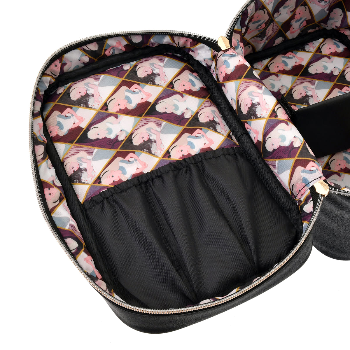 独特の輝きを放つミラーカバーに、メタリックカラーのキャラクタープリントが際立つ「アリス」デザインの折りたたみミラー。