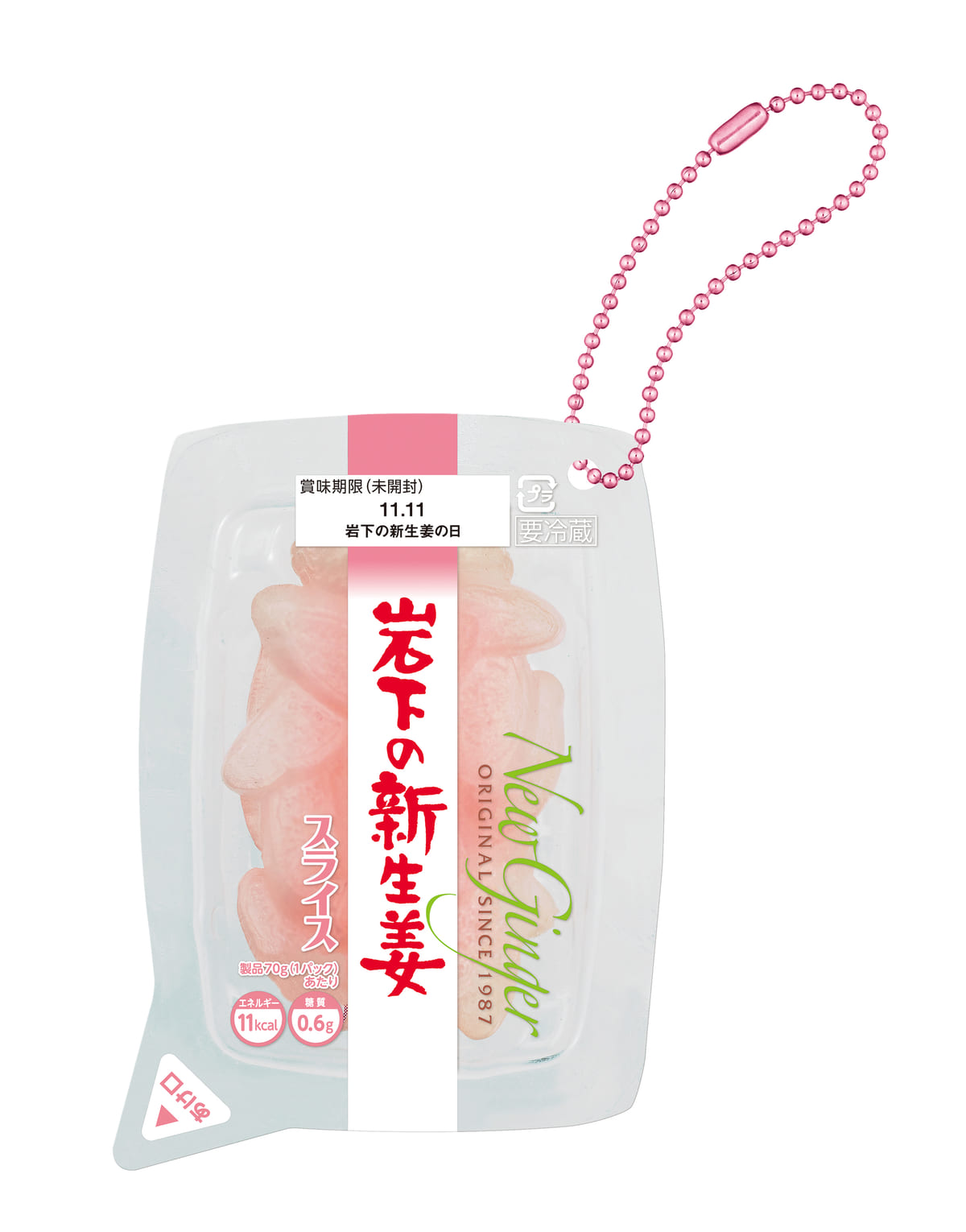 「岩下の新生姜」のパッケージがデザインされたミニチャーム付きです☆
