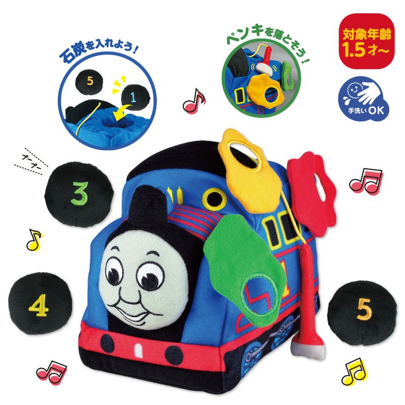 「トーマス」に石炭パーツを入れたり、ペンキを落としたりと、小さなお子さんが楽しく指先を使った遊びができるソフトトイです☆
