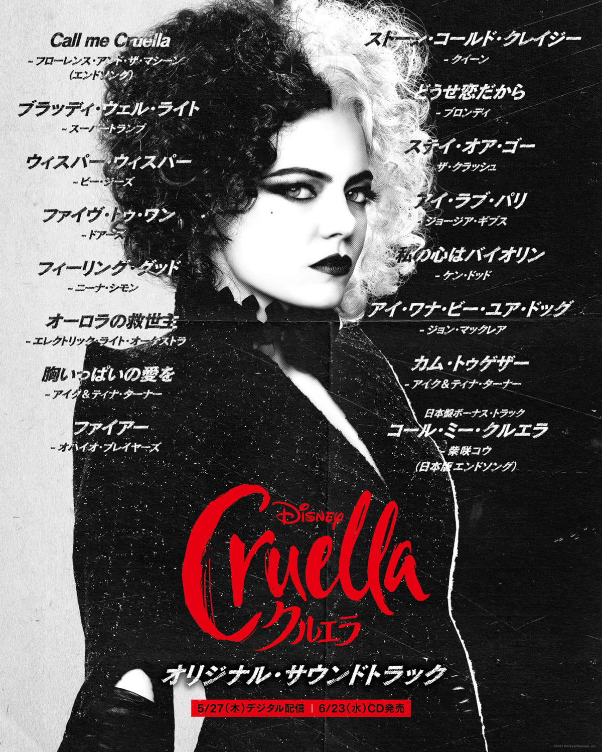 これらに加えてサントラ盤には、新たに書き下ろされたエンドソング『Call me Cruella』を収録しています。