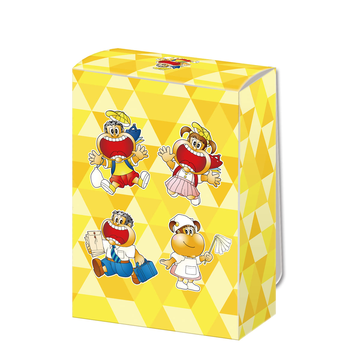 ウラ面に「ガリガリ君」と、妹の「ガリ子」ちゃんが小学生やサラリーマン姿で登場するオリジナルデッキケース、