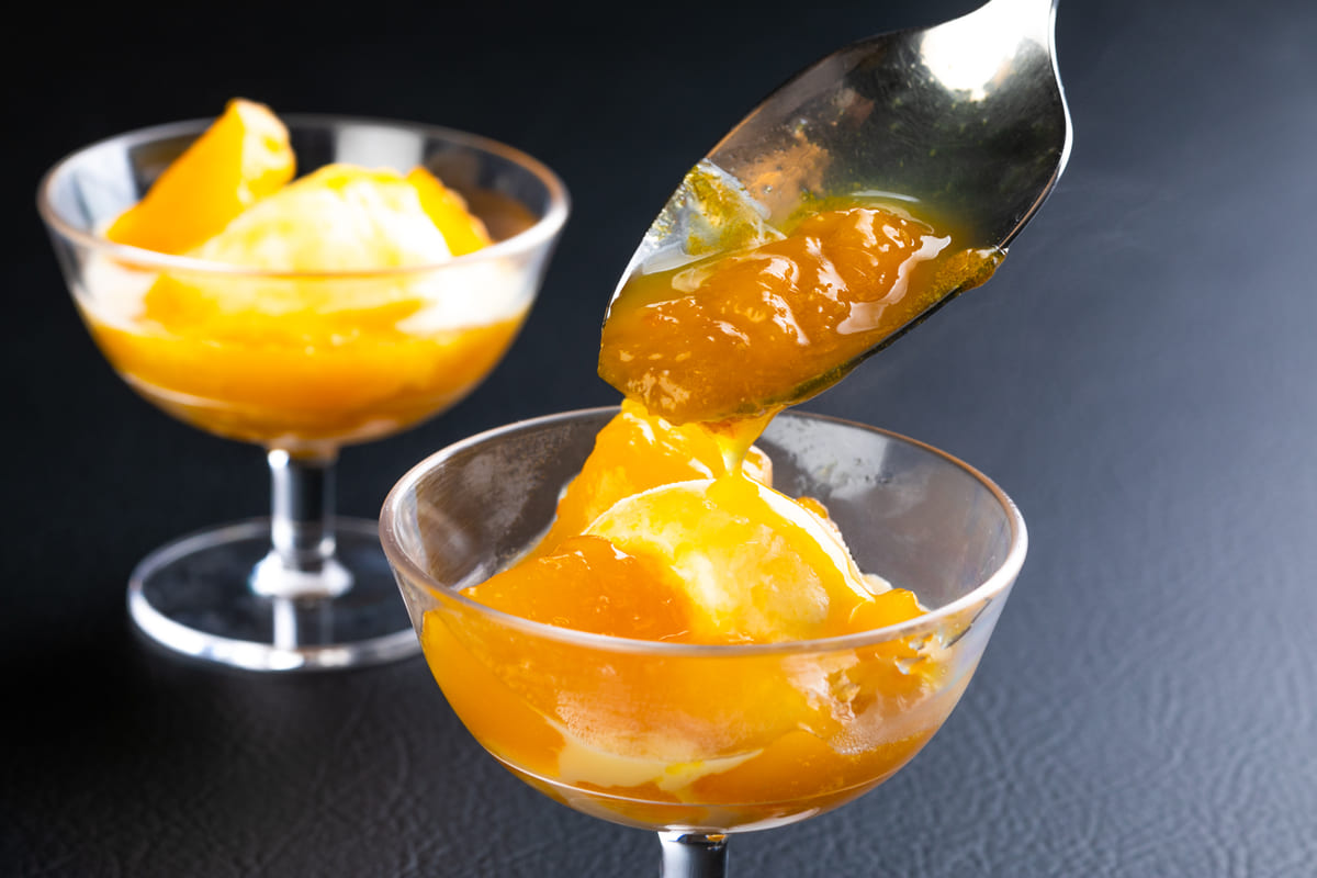 デザートには、季節のフルーツを使用した見た目も美しいジュビレが登場。