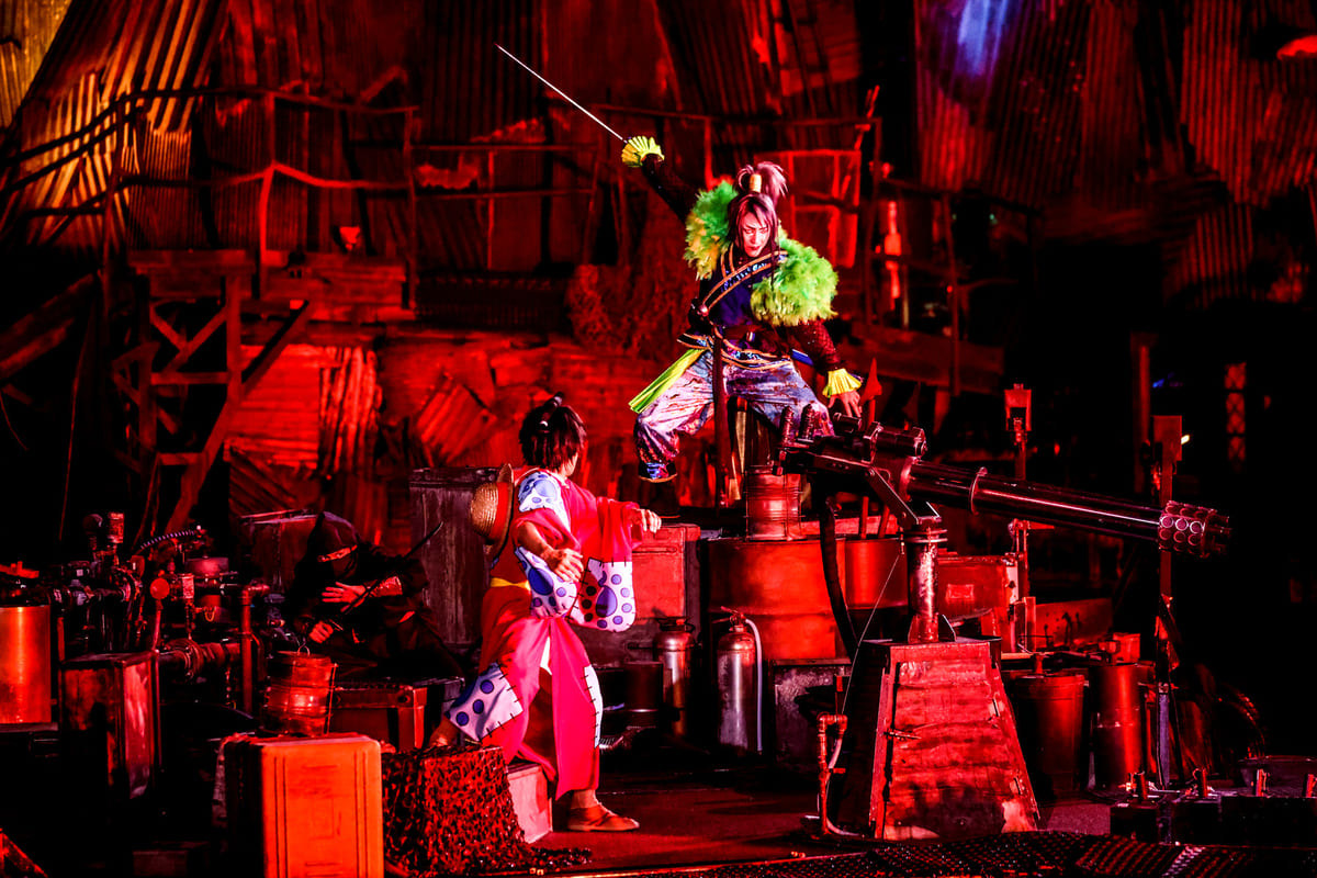 ショーの中 では 、ワノ国衣装に身を包んだそれぞれのキャラクターの必殺技や、ハラハラドキドキのスタントパフォーマンス 、コミカルなダンスなど見どころも盛りだくさん!