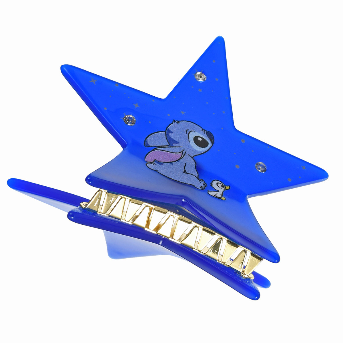 『リロ&スティッチ』シリーズの主人公「スティッチ」とアヒルがデザインされたお星様型ヘアクリップ。