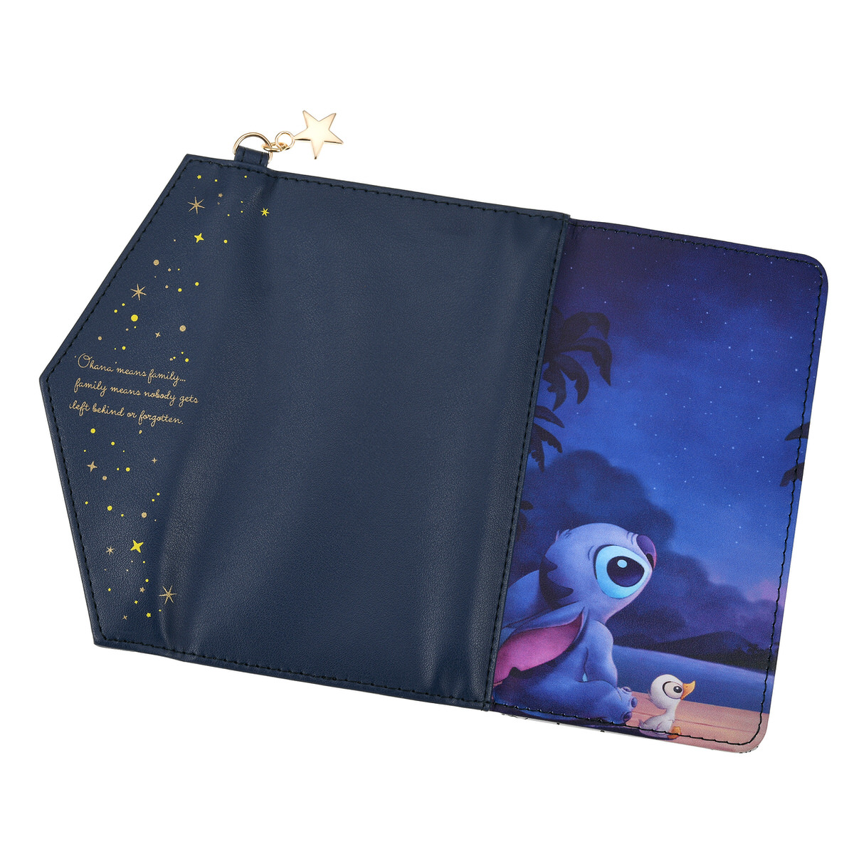 「スティッチ」とアヒルがデザインされたタブレットケース。