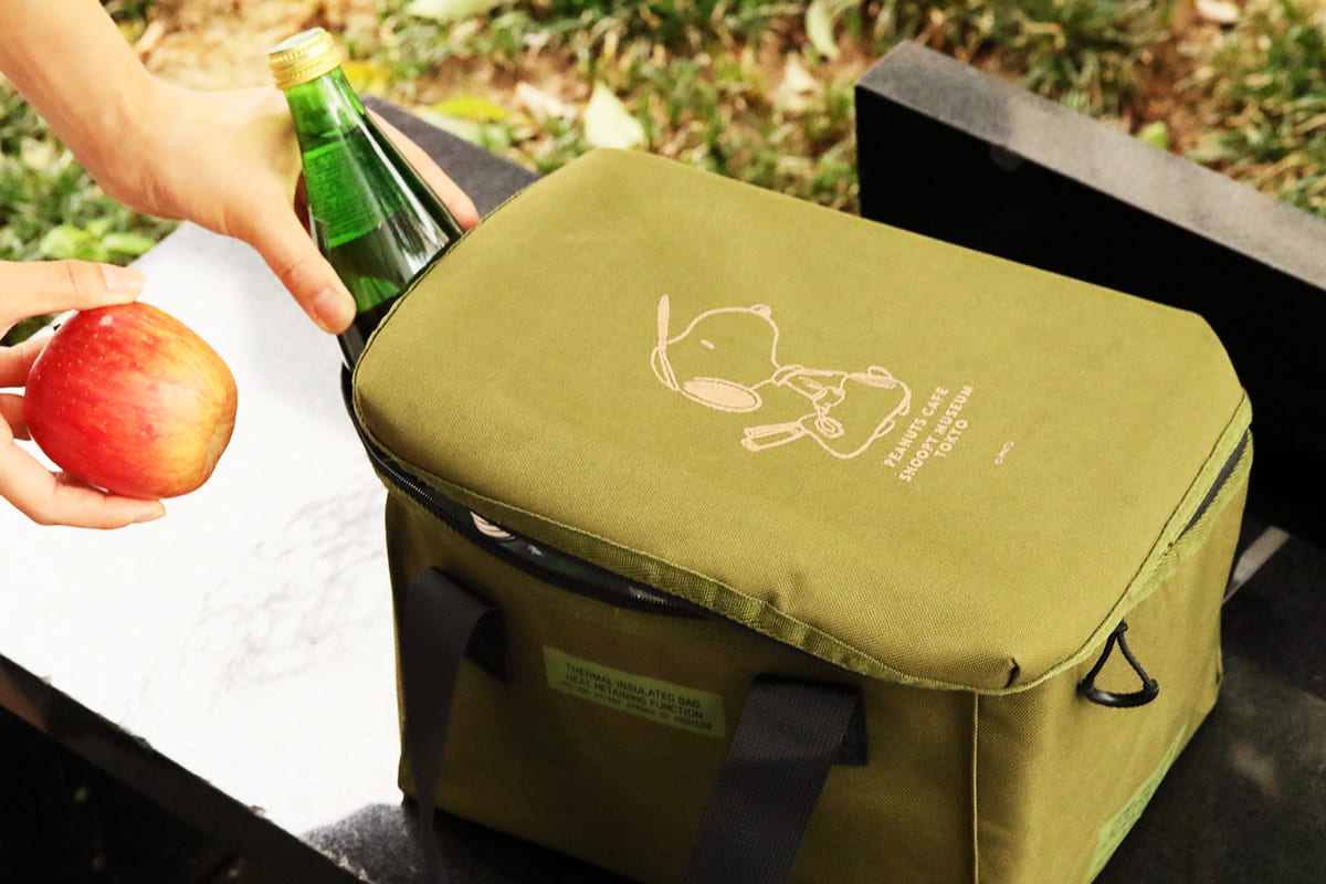 テニス場に向かうスヌーピーがプリントされたクーラーバッグです。