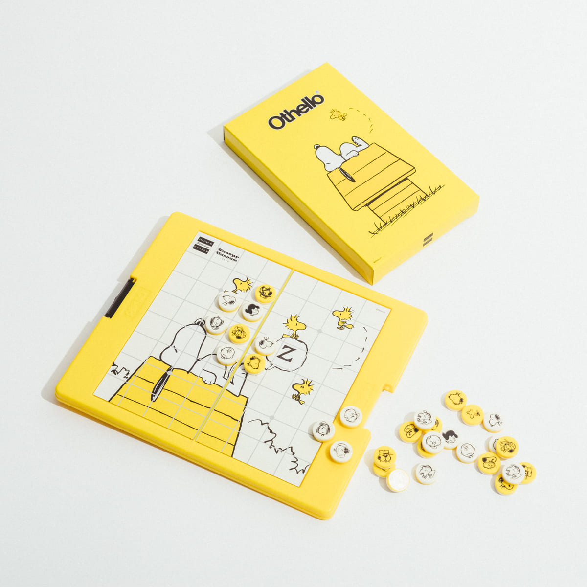 盤面にはお昼寝する「スヌーピー」とマス目にとまる「ウッドストック」が、石には両面に「ピーナッツ」の仲間たちがデザインされています。