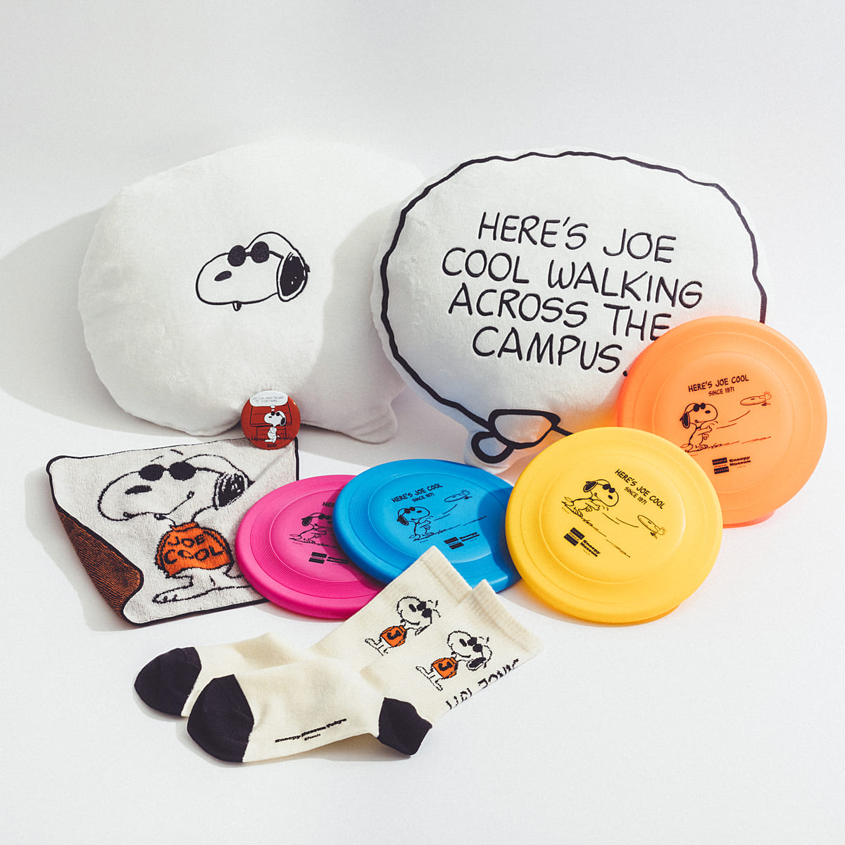 裏面に台詞がプリントされたクッションや、レジャーのマストアイテム・フライングディスクなど、「ジョー・クール」のキャラクター性にぴったりなグッズがラインナップです。