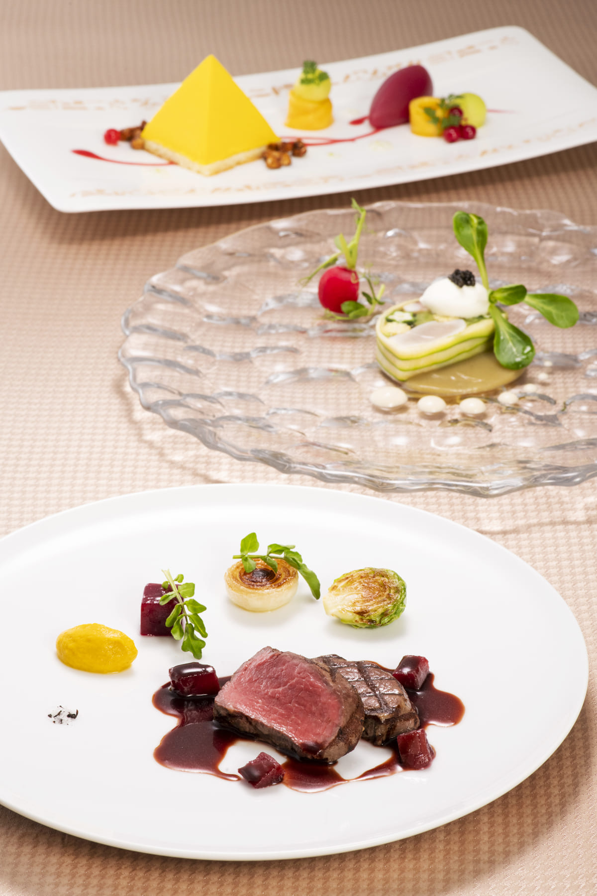 デザートは砂漠とピラミッドをイメージ。