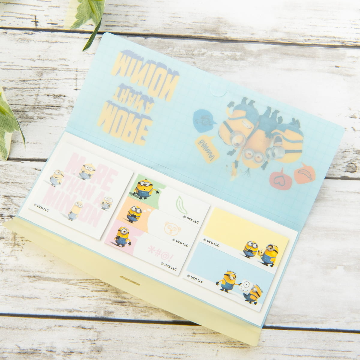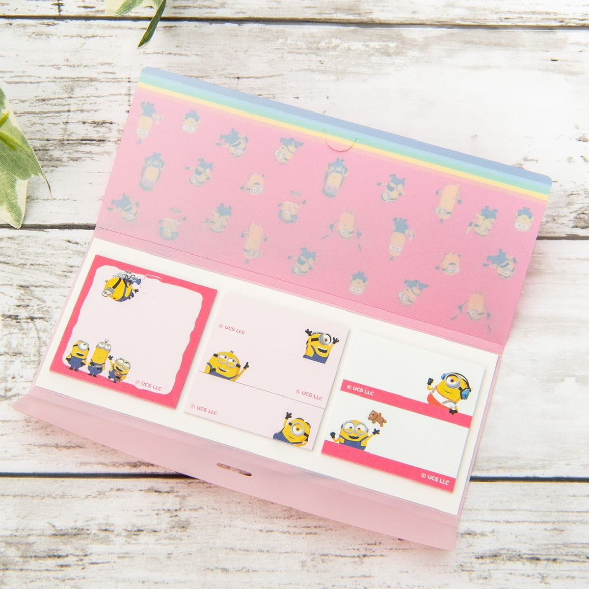 ポップな色使いのケースに、「ミニオン」の付箋を大小6柄ずつセット☆