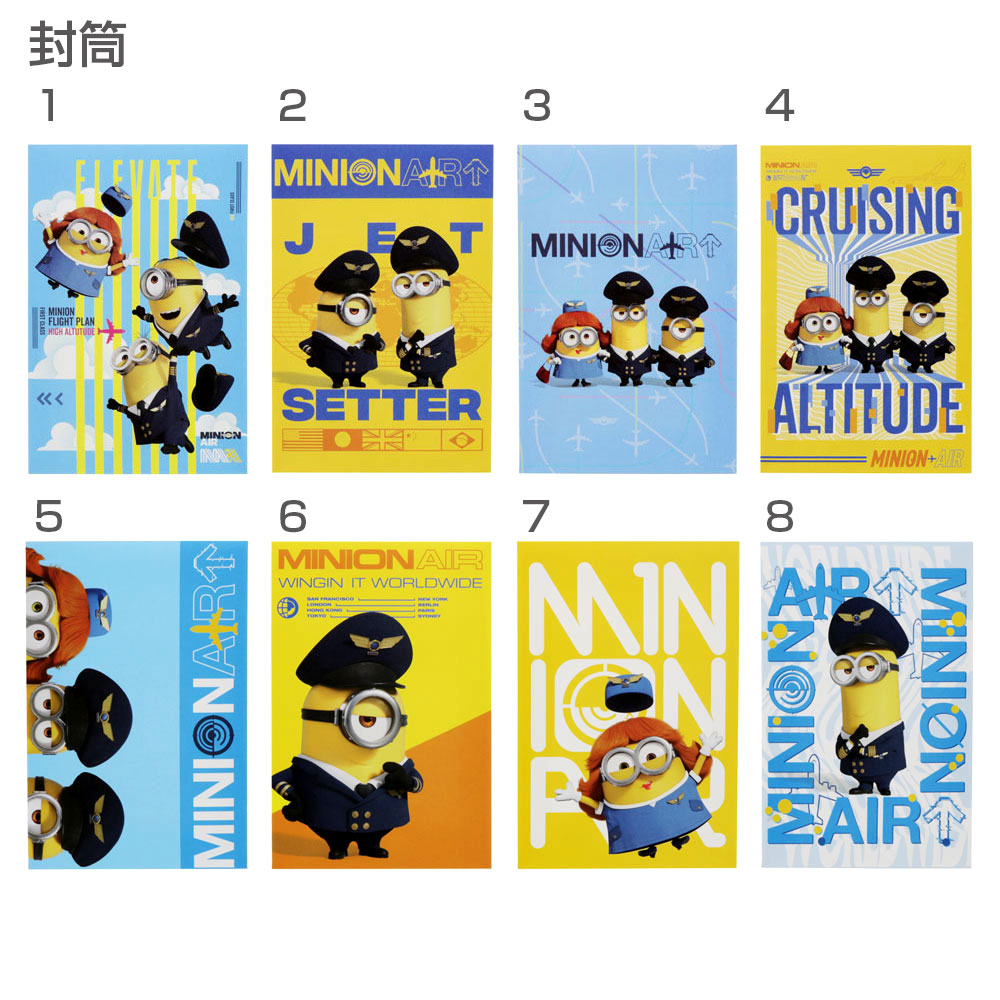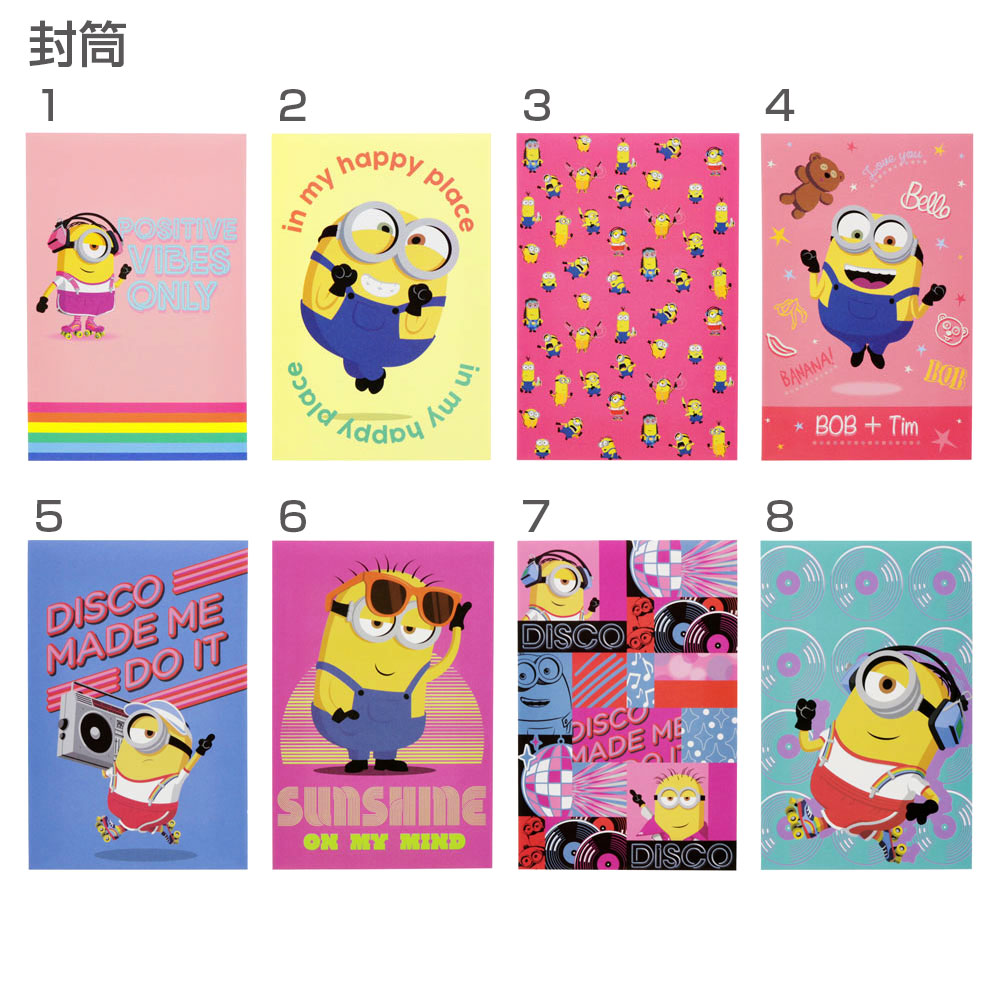 明るく、ノリノリな様子の「ミニオン」たちが描かれた、8種類の封筒がセットに入っています!