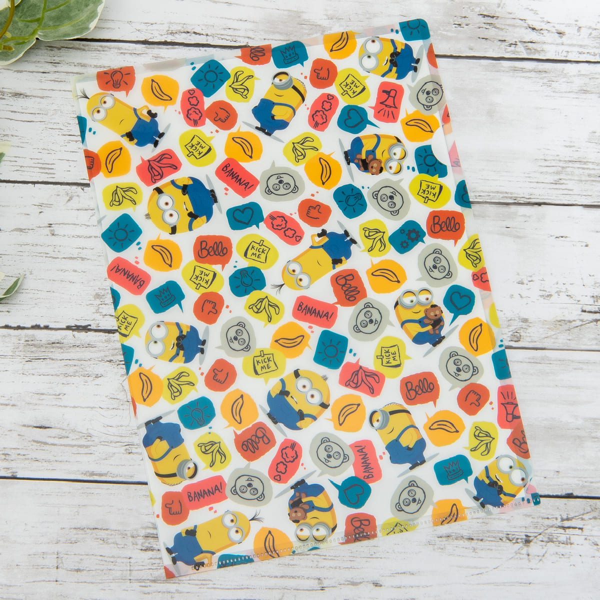 一見シンプルに見えて、よく見ると「ミニオン」たちの表情が散りばめたクリアファイル。