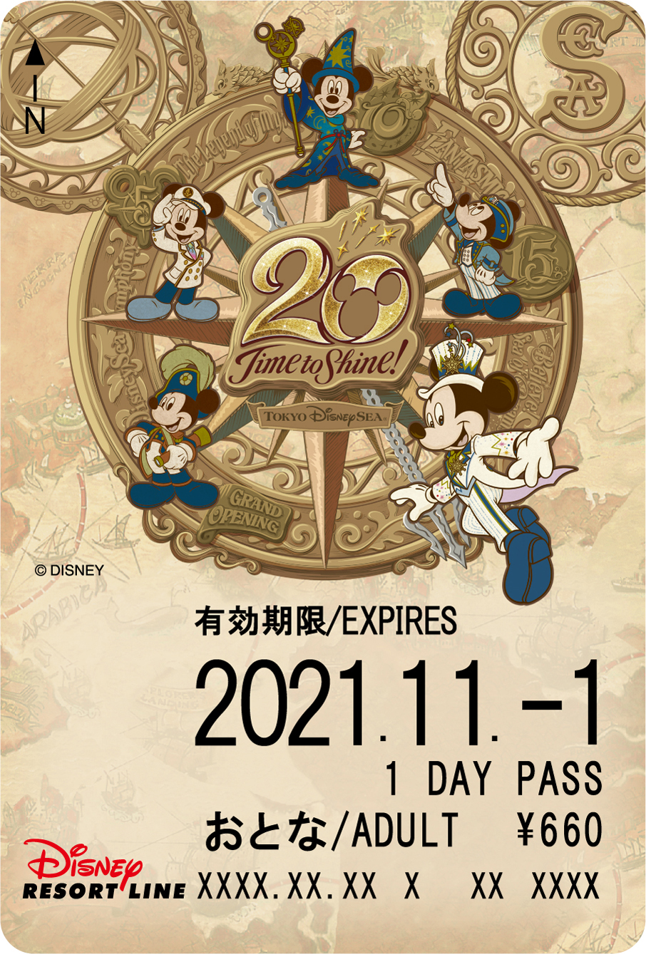 “東京ディズニーシー20周年:タイム・トゥ・シャイン!”デザイン!ディズニーリゾートライン「フリーきっぷ」