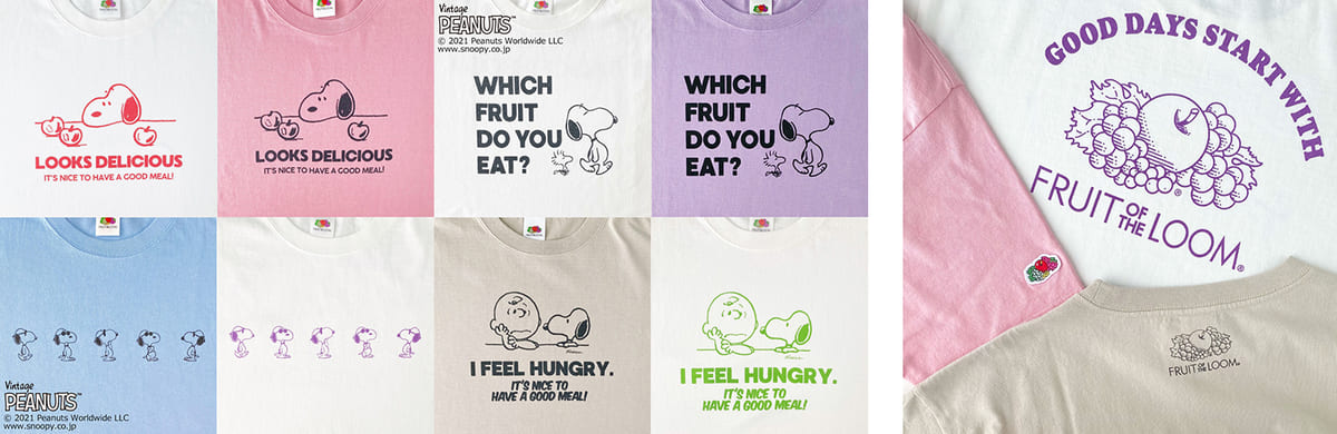 商品ラインナップのひとつとして、『PEANUTS(ピーナッツ)』と「FRUIT OF THE LOOM(フルーツオブザルーム)」の限定コラボアイテムが発売されています☆