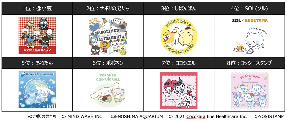 「クロミ」が11年ぶりのTOP5入り、「こぎみゅん」が初のTOP10入りを果たすなど、どのキャラクターも大健闘でした。