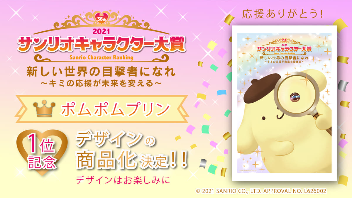 セブンイレブンで提供中のサービス「セブンプリント」にて、『2021年サンリオキャラクター大賞』にエントリーしている80キャラクターをそれぞれデザインした「コンテンツプリント」の購入数が一番多かったキャラクターに贈られる同賞は、「ポムポムプリン」が受賞。