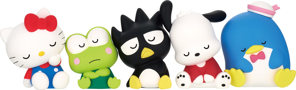 いろんなものに”ズン”とよりかかる「ハローキティ」「けろけろけろっぴ」「ポチャッコ」「バッドばつ丸」「タキシードサム」の姿に、キュンとするかわいいフィギュアです。