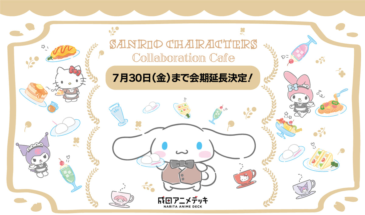 成田国際空港 第2旅客ターミナル本館2階の「成田アニメデッキ」で、サンリオの人気キャラクター「シナモロール」や「ハローキティ」「マイメロディ」とコラボレーションしたカフェを開催中!
