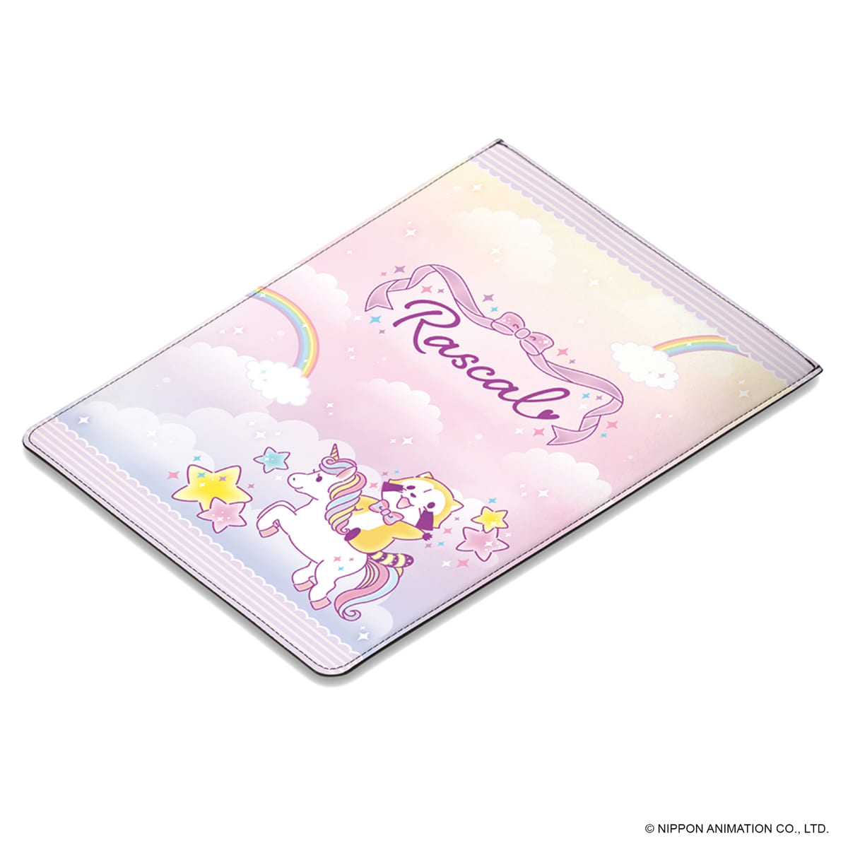 ユニコーンにのった「ラスカル」のゆめかわアートが使用された汎用タブレットケース。