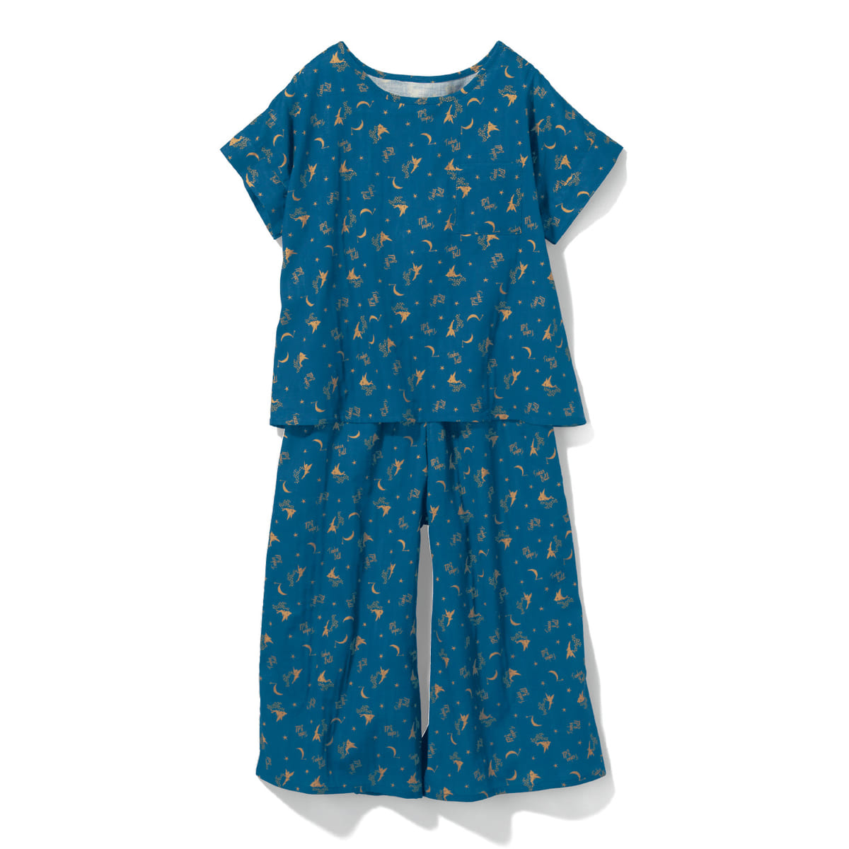 トップスとガウチョパンツのコンビで、ルームウエアのようにも使える半袖パジャマ。