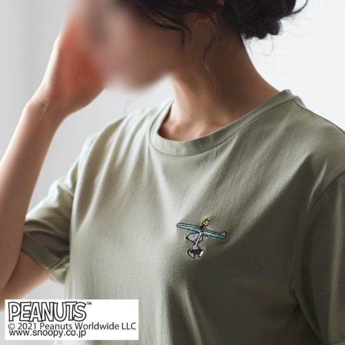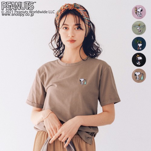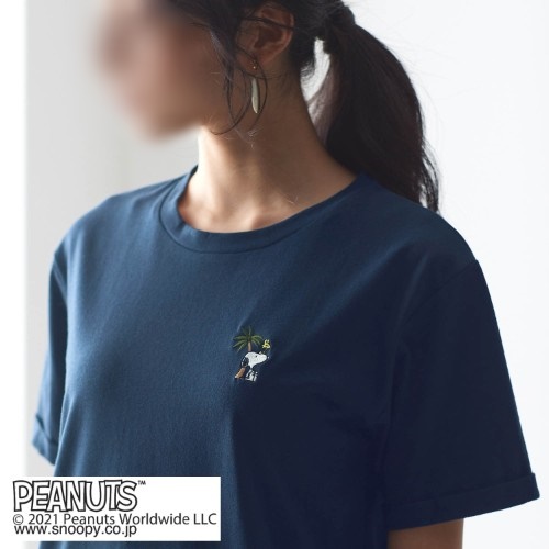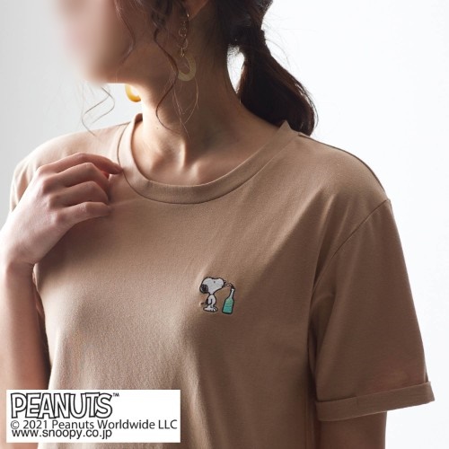 夏をテーマにした刺しゅうがポイント!スヌーピー「ドロップショルダーのオーバーTシャツ」