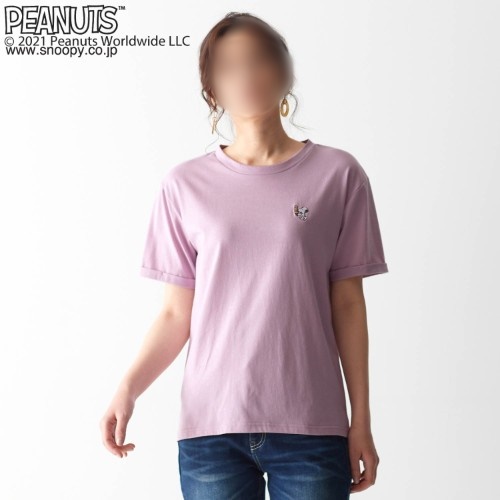 ラベンダーカラーの「スヌーピー」ドロップショルダーのオーバーTシャツ。