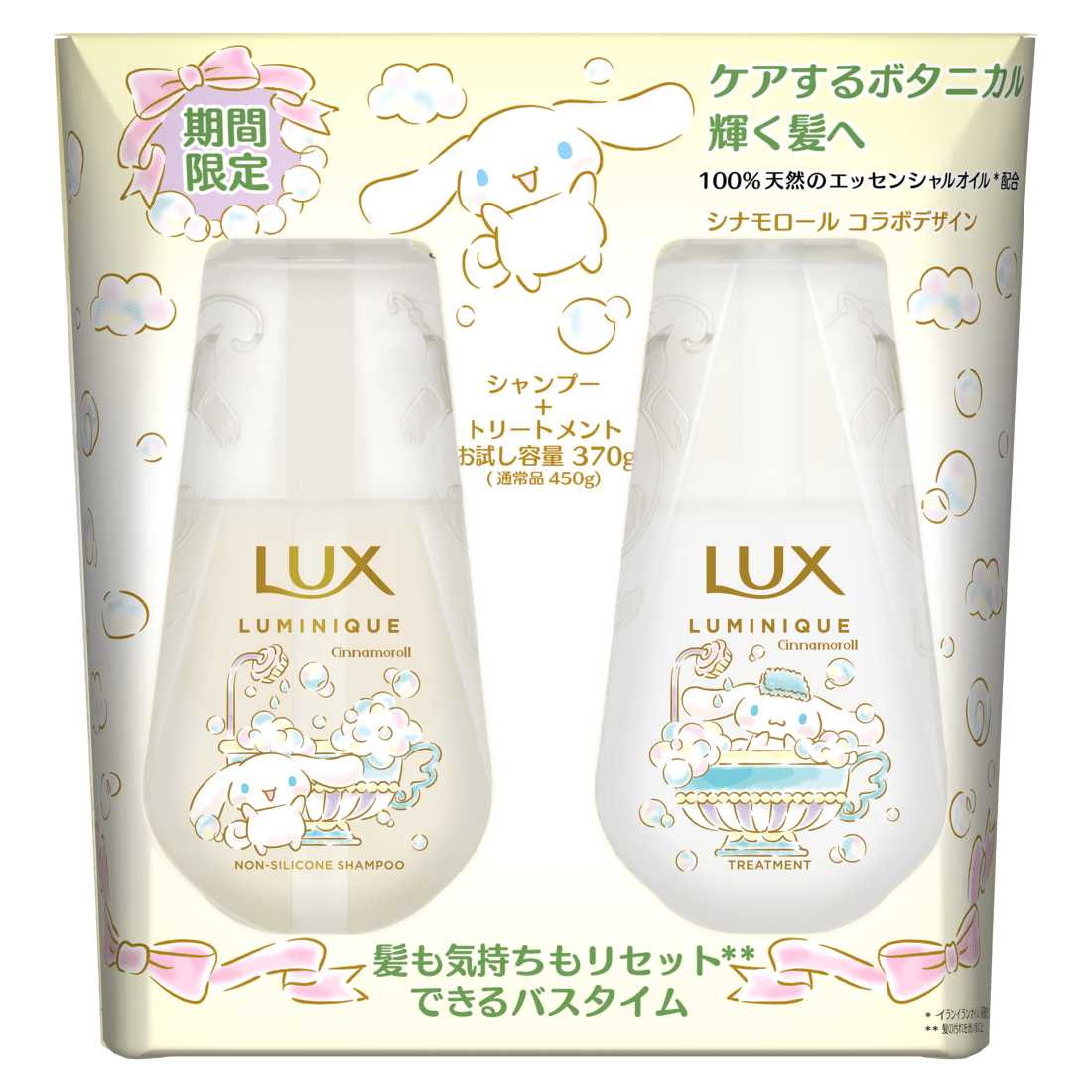 真っ白なボトルがかわいい「シナモロール」のボトルは「ラックス ルミニーク ボタニカルピュア」です。
