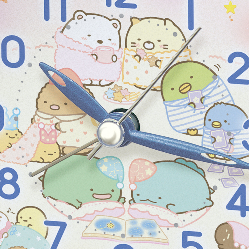 「おとまり会」をテーマにしたおうち型の時計に「すみっコ」たちが集まった文字盤のイラストも注目です。