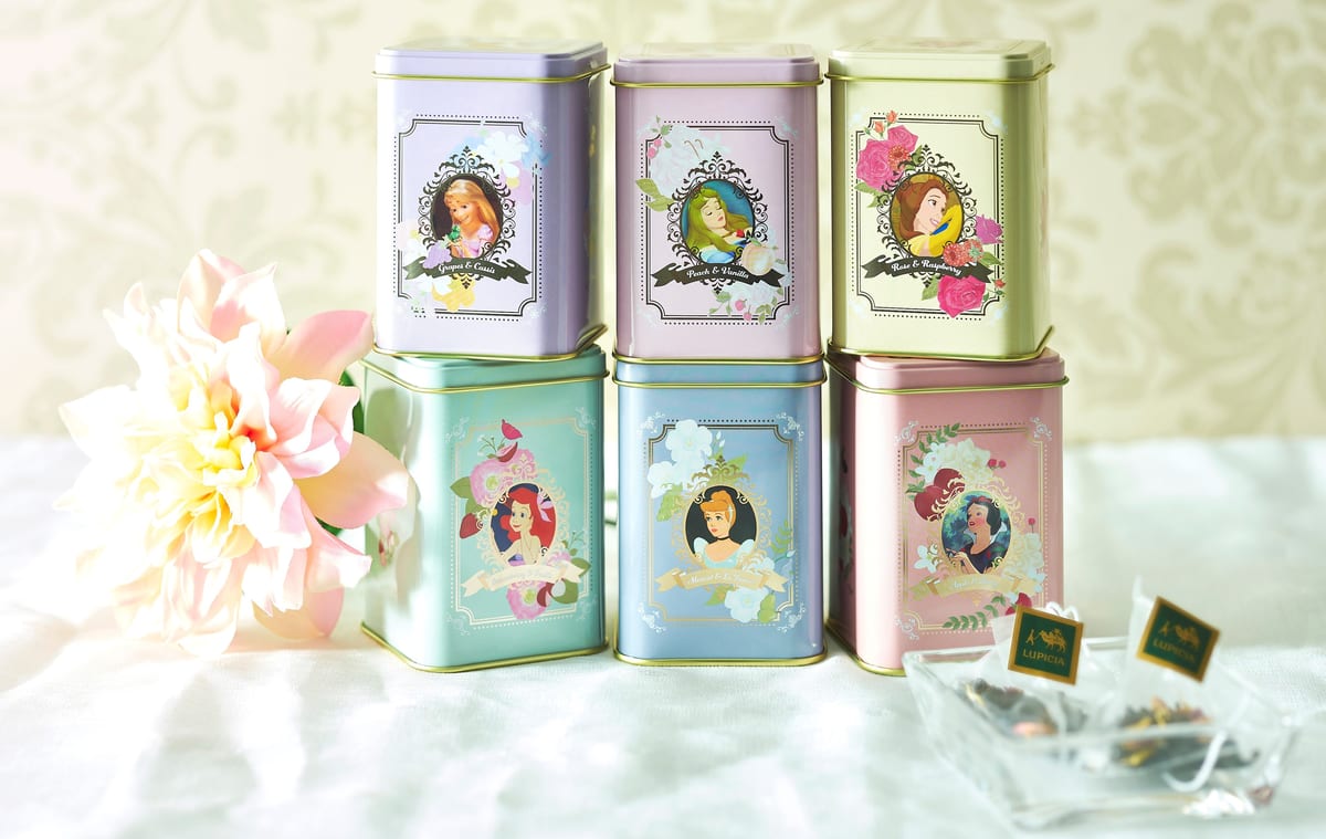 ショップディズニー1周年を記念した、ディズニープリンセスの紅茶缶6種セットもラインナップ。