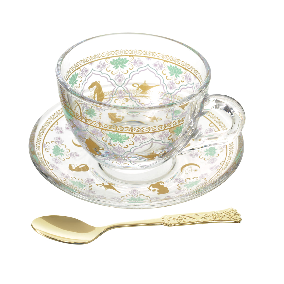 『アラジン』の物語にまつわるモチーフがデザインされたカップ&ソーサーとスプーンが付いた、素敵なティータイムが過ごせるセットです☆