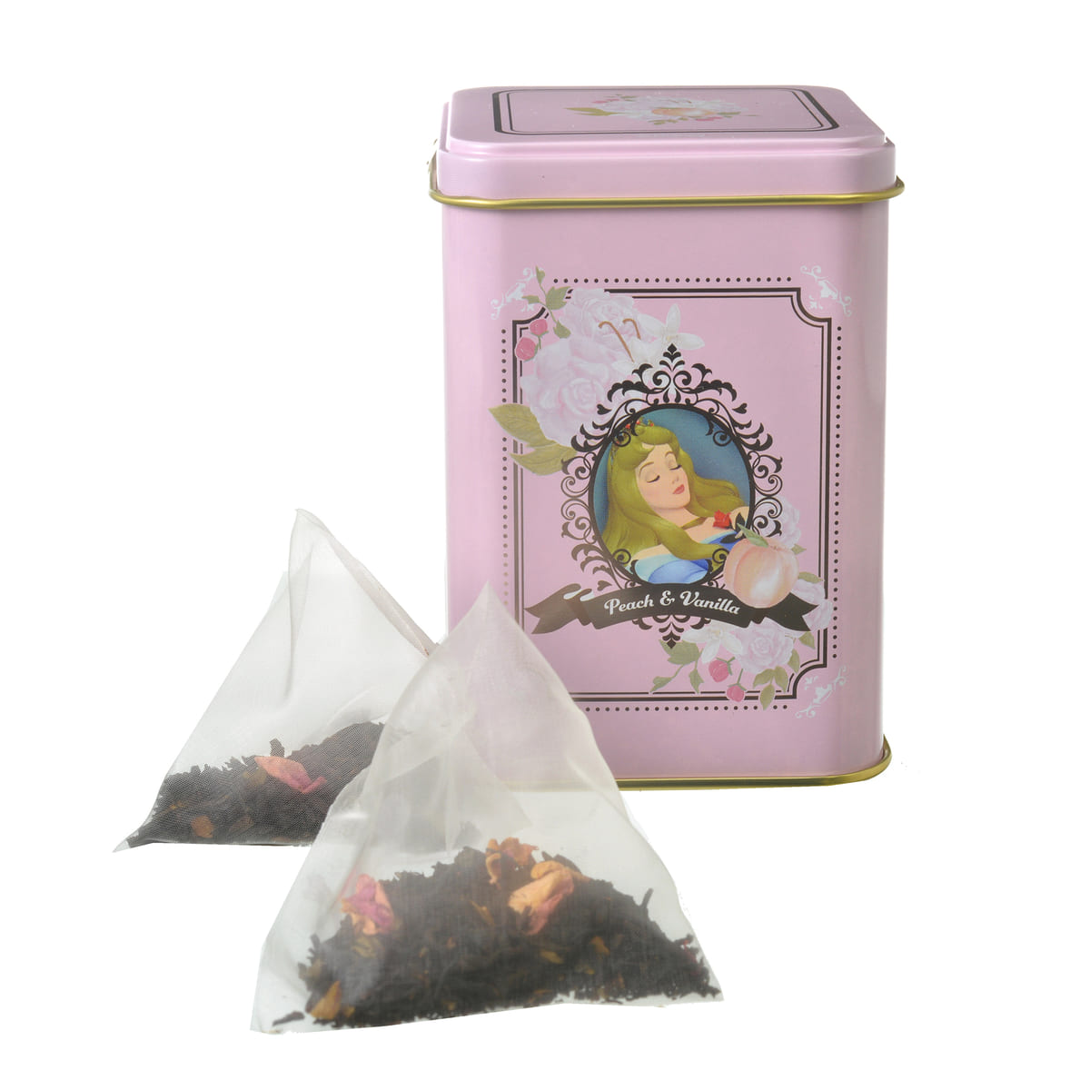 『眠れる森の美女』ディズニープリンセス「オーロラ姫」をイメージした紅茶缶はフェミニンなピンクカラーがベース。