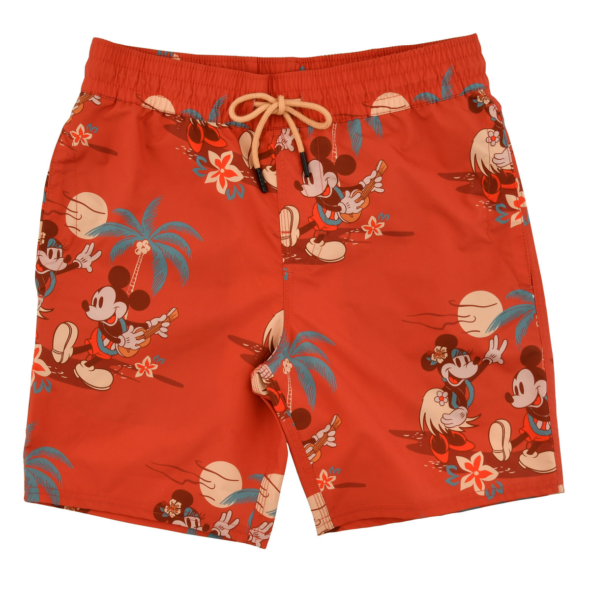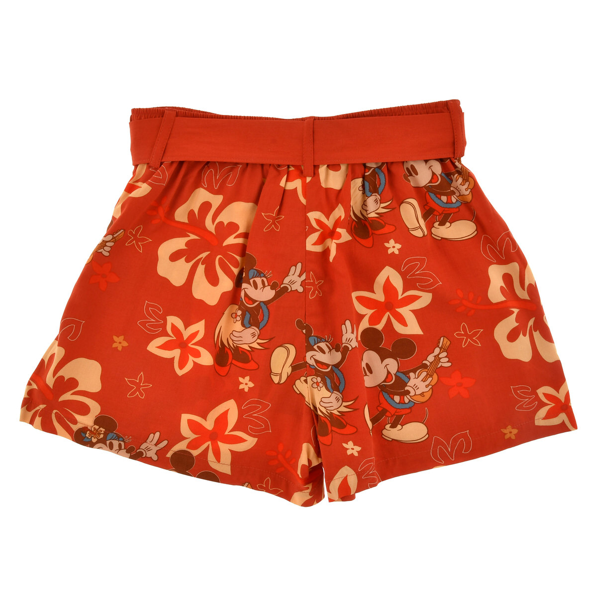 陽気にウクレレを弾く「ミッキーマウス」とフラを踊る「ミニーマウス」がプリントされたショートパンツ。