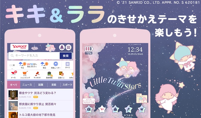 スマホ版Yahoo! JAPANのトップページや検索結果、Androidのホーム画面が無料で「キキ&ララ」のかわいい星空のデザインに変身します☆